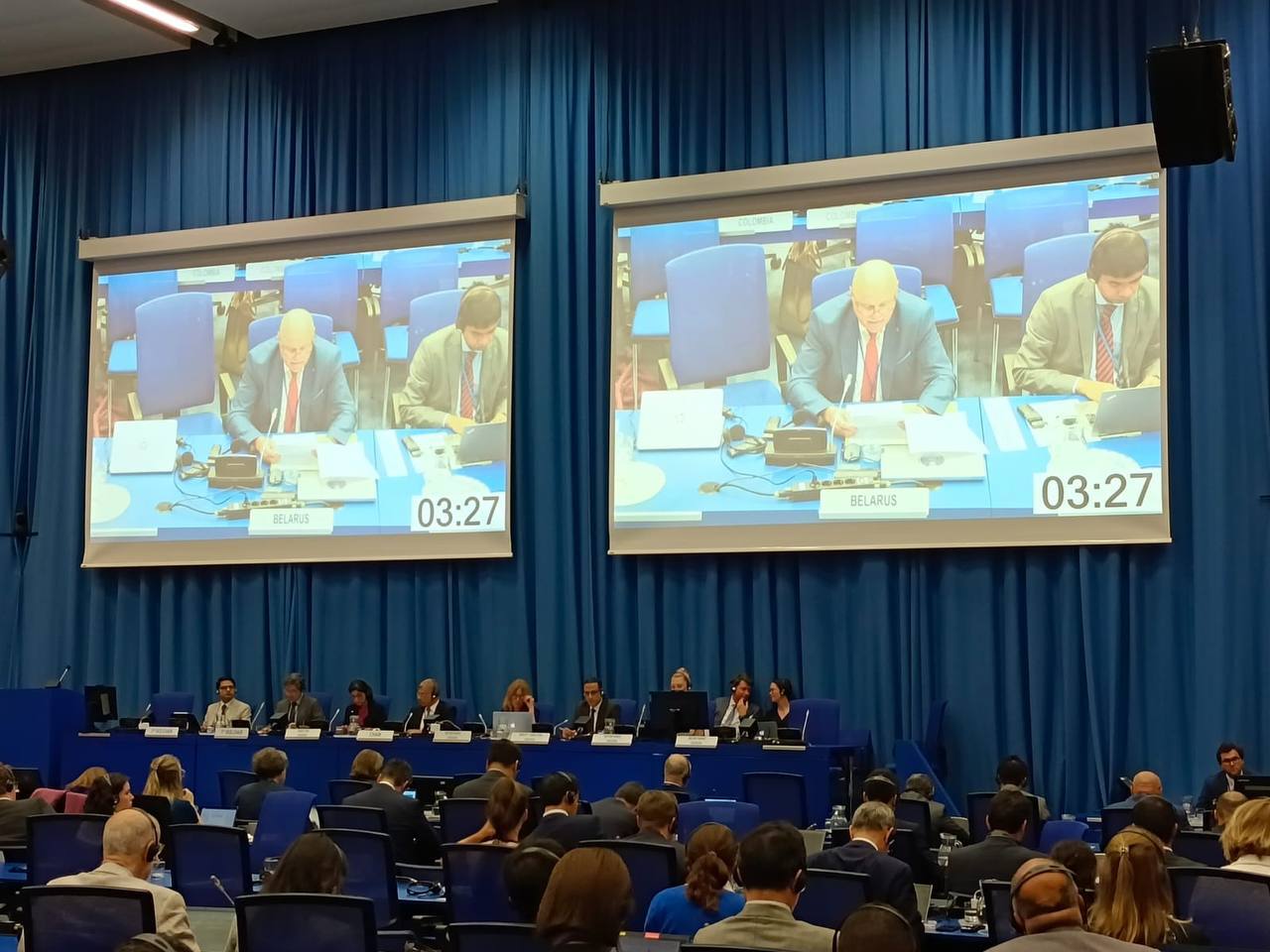 С основным докладом от нашей страны выступила главный специалист управления аэрокосмической деятельности аппарата НАН Беларуси Ирина Казачок. Она подчеркнула, что космическая деятельность в Беларуси осуществляется в мирных целях и вносит значительный вклад в развитие науки и техники, экономики и информатизации общества.